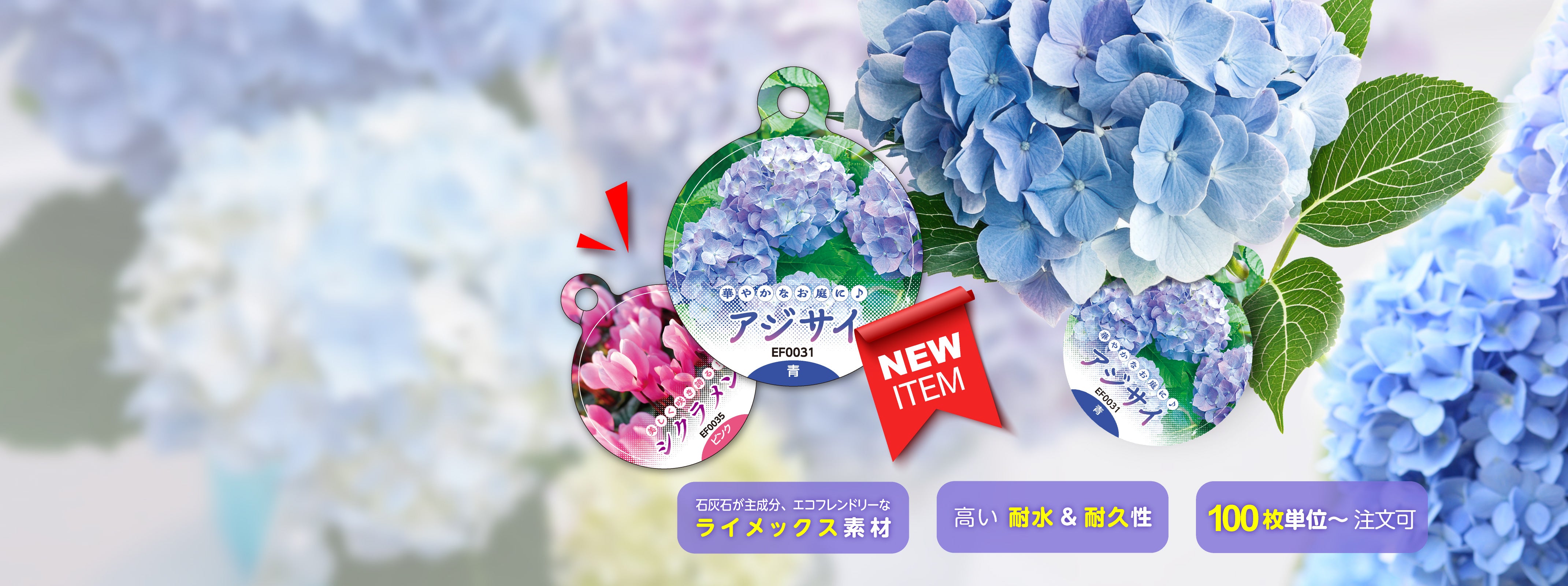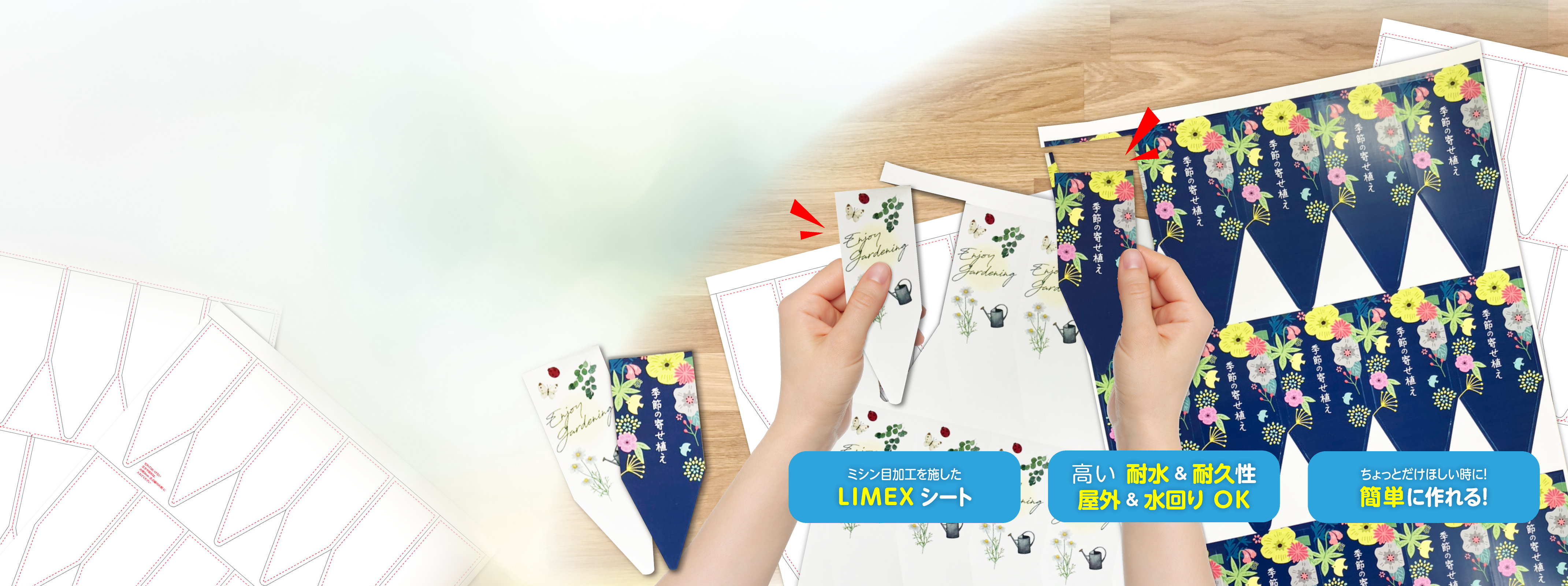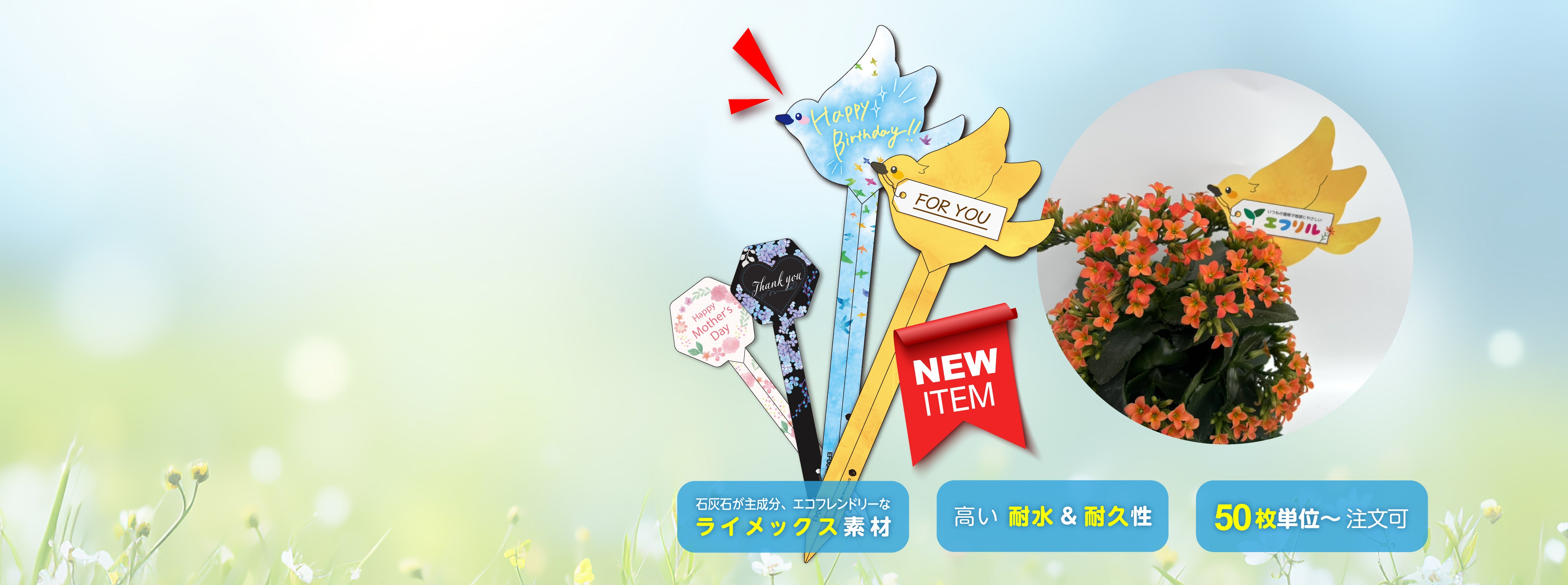 エフリルの園芸用挿しラベルには、「LIMEX」という素材を使用しております。石灰石を主成分とした新素材であり、水はほとんど、木は全く使用せずに作ることができます。他にもプラスチックの代替となる点、二酸化炭素の排出が少ない点、再利用が簡単でリサイクルしやすい点が挙げられます。